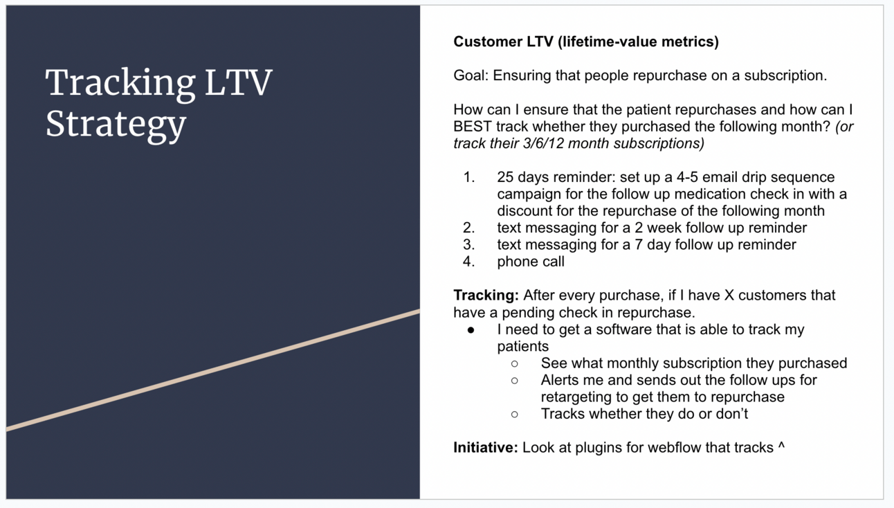 Building out back end on our own and looking for better fulfillment softwares as well as doctor groups so that we can increase our ability to approve people who want to purchase the medication.