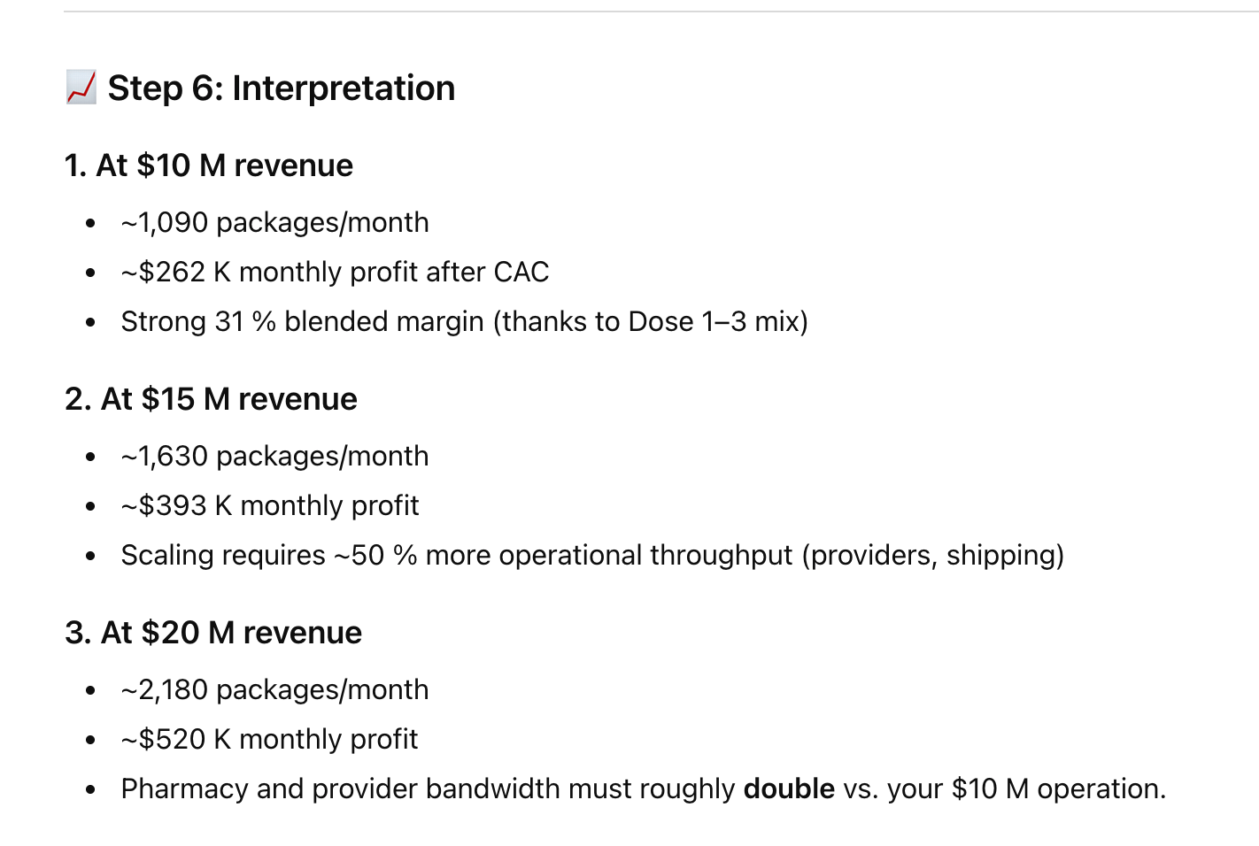 For my 3-month pricing ($765) and per-dose profit after $100 CAC as the base unit economics.